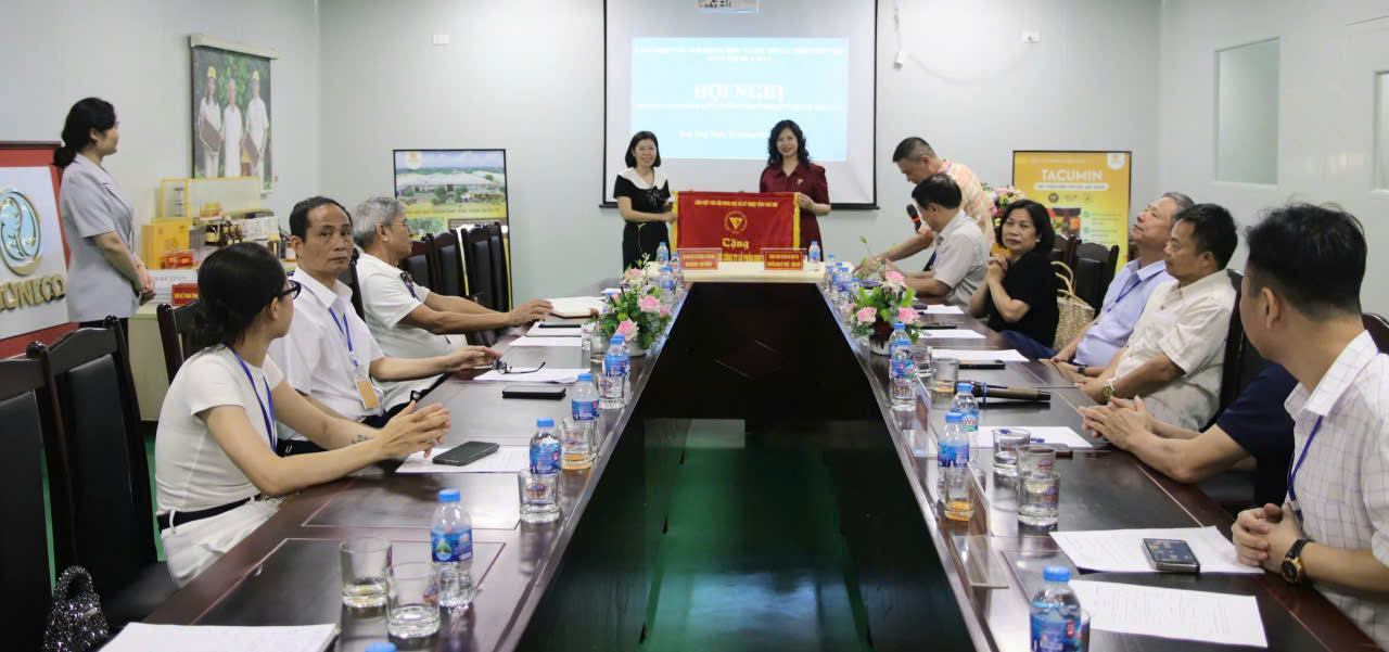Đồng chí Hoàng Thị Kim Dung trao Cờ thi đua của Liên hiệp các Hội Khoa học và Kỹ thuật tỉnh cho Công ty Cổ phần Ong Tam Đảo đã hoàn thành xuất sắc nhiệm vụ năm 2025