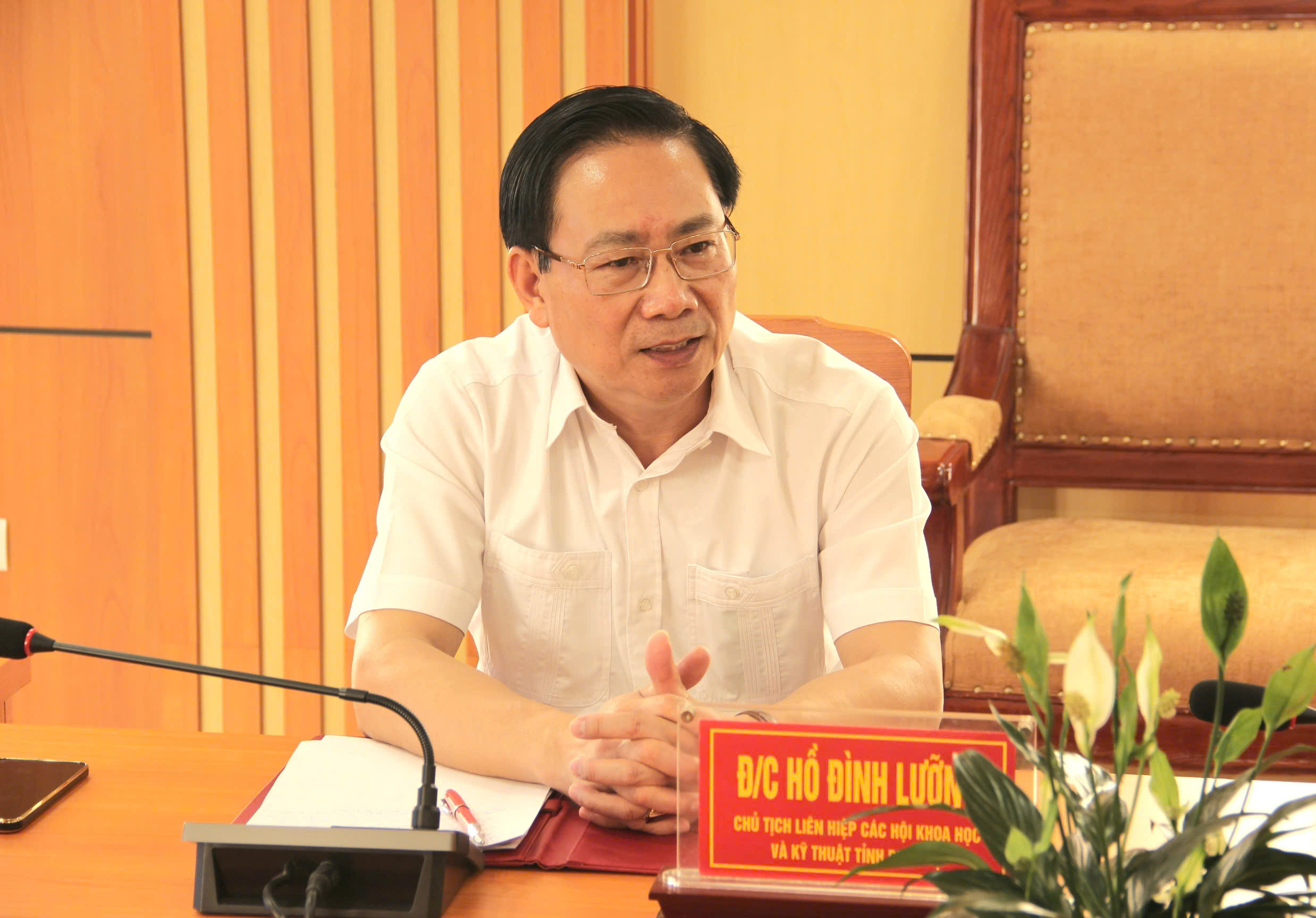 Dự buổi làm việc có đồng chí Lê Tiến Dũng - Phó Giám đốc Sở Khoa học và Công nghệ, cùng đại diện lãnh đạo các phòng, ban chuyên môn và cán bộ cơ quan Thường trực Liên hiệp hội tỉnh. Đồng chí Hồ Đình Lưỡng - Chủ tịch Liên hiệp hội và đồng chí Đinh Thị Minh Thái - Viện trưởng Viện Tài chính vi mô và Phát triển cộng đồng đồng chủ trì hội nghị.