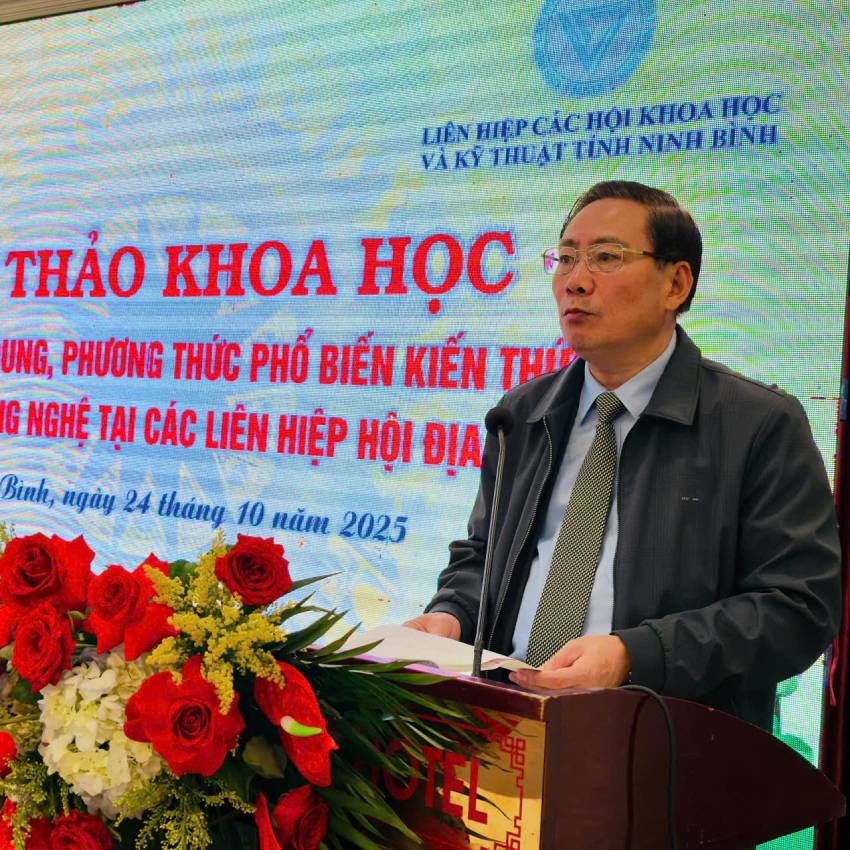 Ngày 24/10, tại phường Hoa Lư, tỉnh Ninh Bình, Liên hiệp các Hội Khoa học và Kỹ thuật Việt Nam tổ chức Hội thảo khoa học “Đổi mới nội dung, phương thức Phổ biến kiến thức Khoa học công nghệ tại các Liên hiệp Hội địa phương". Dự Hội thảo về phía Liên hiệp Hội Việt Nam có đồng chí PGS.TS Phạm Quang Thao, Phó Chủ tịch Liên hiệp Hội Việt Nam, Ths. Lê Thanh Tùng, Trưởng Ban Phổ biến kiến thức; Hà Hoàng Yến, Phó Giám đốc phụ trách Quỹ Hỗ trợ sáng tạo kỹ thuật Việt Nam (vifotec).