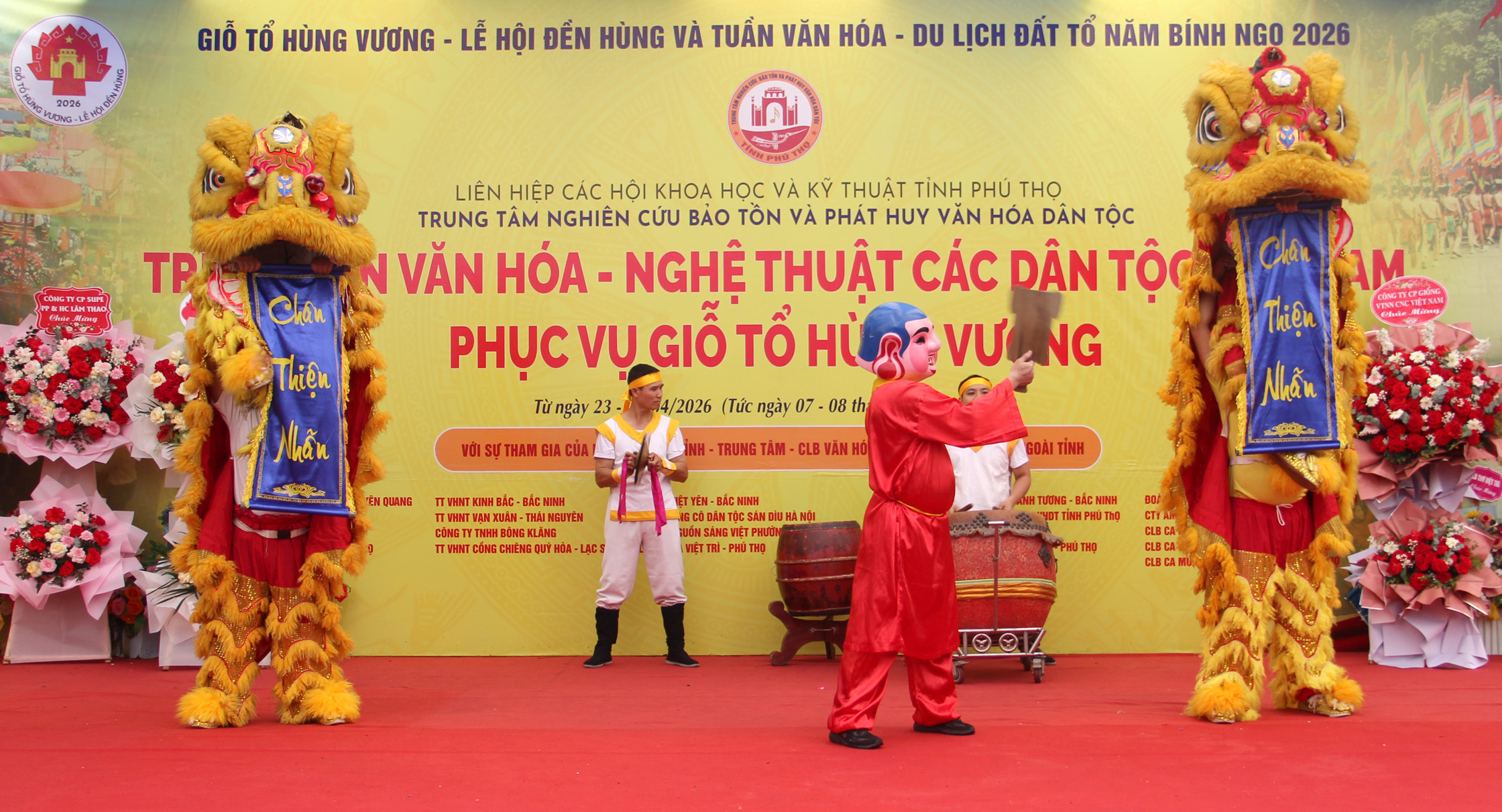 Chương trình diễn ra với nhiều nội dung phong phú như: Nghi thức rước cờ; dâng hương; trao cờ lưu niệm cho các đoàn nghệ thuật; cùng chuỗi tiết mục biểu diễn đặc sắc đến từ 13 đoàn nghệ thuật của nhiều tỉnh, thành trong cả nước. Nổi bật là các tiết mục trống hội, múa lân, các làn điệu dân ca vùng miền và đặc biệt là Hát Xoan Phú Thọ - Di sản văn hóa phi vật thể đại diện của nhân loại.