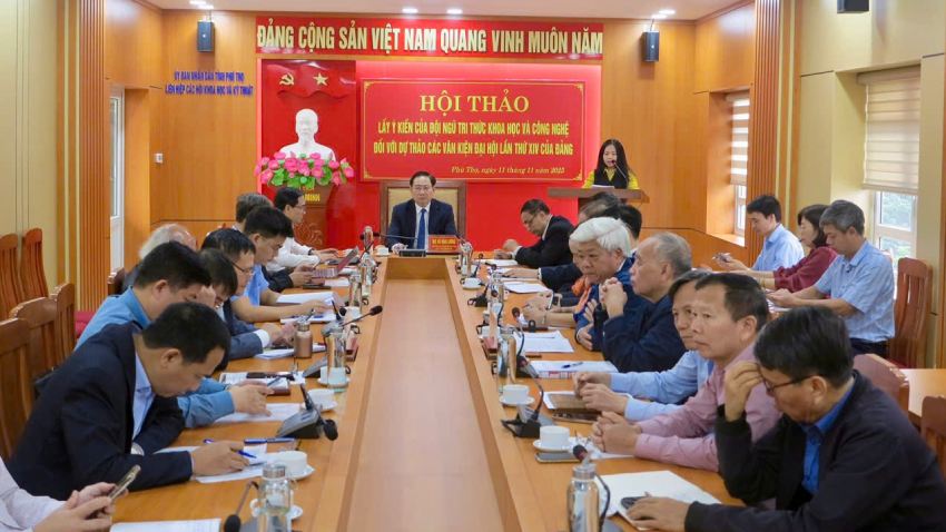 Sáng ngày 11/11/2025, Liên hiệp các Hội Khoa học và Kỹ thuật tỉnh tổ chức Hội thảo lấy ý kiến của đội ngũ trí thức khoa học và công nghệ đối với các dự thảo Văn kiện Đại hội lần thứ XIV của Đảng. Dự hội thảo có đại diện lãnh đạo Ban Tuyên giáo và Dân vận Tỉnh ủy, Sở Khoa học và Công nghệ, Sở Giáo dục và Đào tạo, Trường Chính trị tỉnh; lãnh đạo một số Hội thành viên trực thuộc Liên hiệp các Hội Khoa học và Kỹ thuật tỉnh cùng các chuyên gia, nhà khoa học ở Trung ương và của tỉnh Phú Thọ. Đồng chí Hồ Đình Lưỡng, Chủ tịch Liên hiệp các Hội Khoa học và Kỹ thuật tỉnh chủ trì Hội thảo.