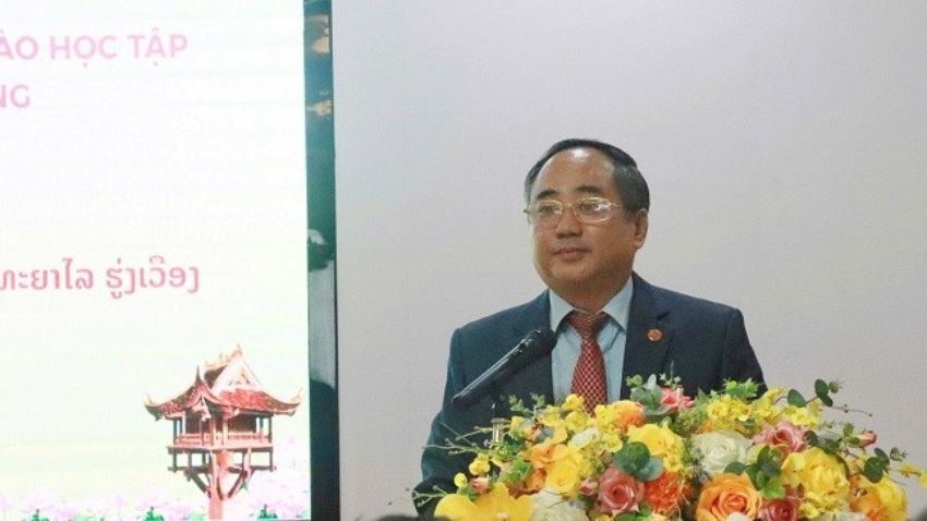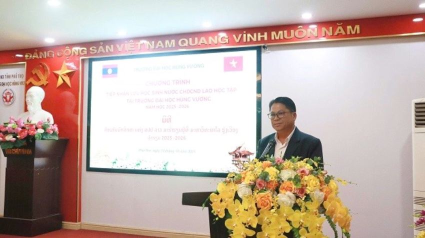 Phát biểu tại chương trình, TS. Đỗ Khắc Thanh - Hiệu trưởng bày tỏ niềm vui mừng chào đón các đại biểu, các lưu học sinh nước CHDCND Lào đến học tập tại Trường Đại học Hùng Vương. Đồng chí khẳng định: Chương trình này đánh dấu cột mốc quan trọng trong sự hợp tác giữa Việt Nam và Lào, mở ra cơ hội học tập và giao lưu văn hóa cho các LHS, đồng thời thể hiện trách nhiệm thực hiện các văn bản hợp tác đào tạo Cán bộ, LHS đã ký kết giữa hai bên. Với tư cách là Hiệu trưởng và cũng là một người Thầy, đồng chí Đỗ Khắc Thanh động viên các LHS Lào hãy luôn tự hào và trân trọng những giá trị văn hóa, lịch sử của Lào - Đây chính là nguồn động lực giúp các em cố gắng trong học tập và rèn luyện. Luôn tích cực và chăm chỉ trau dồi kiến thức và kỹ năng trong thời gian học tập tại Trường Đại học Hùng Vương - Đây sẽ là hành trang quý giá, giúp các em thành công trong công việc, góp phần xây dựng quê hương, đất nước Lào ngày càng giàu mạnh. Hãy giữ gìn và vun đắp mối quan hệ hữu nghị đặc biệt giữa hai nước Lào - Việt Nam, không chỉ trong thời gian học tập tại Trường Đại học Hùng Vương mà cả trong tương lai. Và hãy luôn mở lòng để học hỏi những điều mới, hòa nhập với cuộc sống và văn hóa địa phương, đồng thời lan tỏa nét đẹp của văn hóa Lào đến với bạn bè Việt Nam.