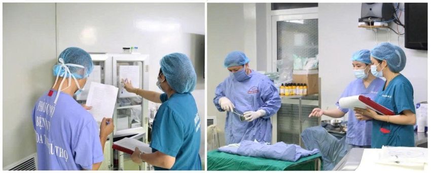 An toàn phẫu thuật, thủ thuật: Để đảm bảo tránh nhầm lẫn người bệnh, vị trí, bộ phận phẫu thuật,… Bệnh viện đã và đang triển khai bảng kiểm an toàn trong phẫu thuật giúp kíp mổ tuân thủ một cách nhất quán đảm bảo an toàn trong quá trình phẫu thuật giúp giảm thiểu tối đa được những rủi ro xảy ra cho người bệnh. Bộ tiêu chí đánh giá mức độ an toàn phẫu thuật theo Quyết định 7482/QĐ-BYT của Bộ Y tế cũng được áp dụng và đánh giá định kỳ hàng năm.